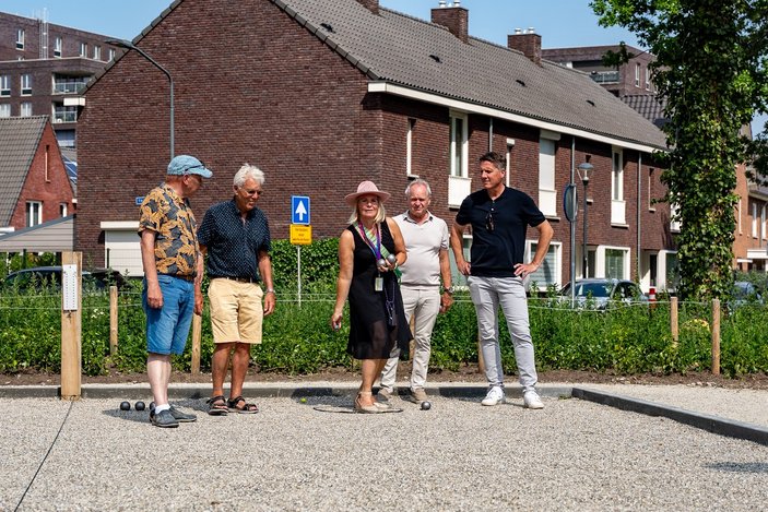 De ontwerpster vond dat de druppels pas echt goed tot hun recht zouden komen, als buurtbewoners konden meedenken over de invulling ervan. Daarom vroeg de wijkmakelaar aan buurtbewoners om mee te denken over de inrichting én te helpen bij de uitvoering. Dat maakt het echte buurtinitiatieven. Hun ideeën hebben geleid tot een veelzijdige en levendige zone, waarin voor ieder wat wils te vinden is: een jeu de boulesbaan, een beweegtuin, een kruidenbloemenpluktuin en een speelplek voor honden. Functies die mooi gesitueerd zijn in druppels, waarmee ze én goed zichtbaar zijn én tegelijkertijd enigszins beschermd. Dankzij intensief contact en een fijne samenwerking tussen de ontwerpster, de wijkmakelaar en de bewoners, is het een prachtige ontmoetingsplek in de wijk geworden. Samen kregen zij meer voor elkaar in hun buurt. Een mooi voorbeeld van wijkgericht werken, waarbij de kracht van de buurt centraal staat.