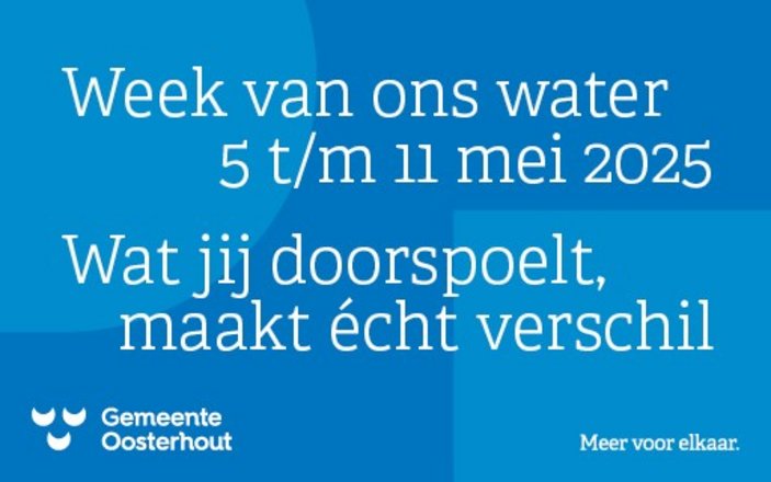 Van 5 tot en met 11 mei 2025 staat Oosterhout in het teken van de week van ons water. Onder het motto "Wat jij doorspoelt, maakt écht het verschil!" ontdekken inwoners op een leuke en interactieve manier wat er onder de grond gebeurt met het riool en het water dat zij dagelijks gebruiken. De gemeente Oosterhout en haar partners organiseren een week vol activiteiten die laten zien wat wel en niet in het riool thuishoort en waarom dat zo belangrijk is. Van een rioolwandeling tot kijkjes achter de schermen, kinderen en volwassenen volgen stap voor stap de weg van het water na het doorspoelen.