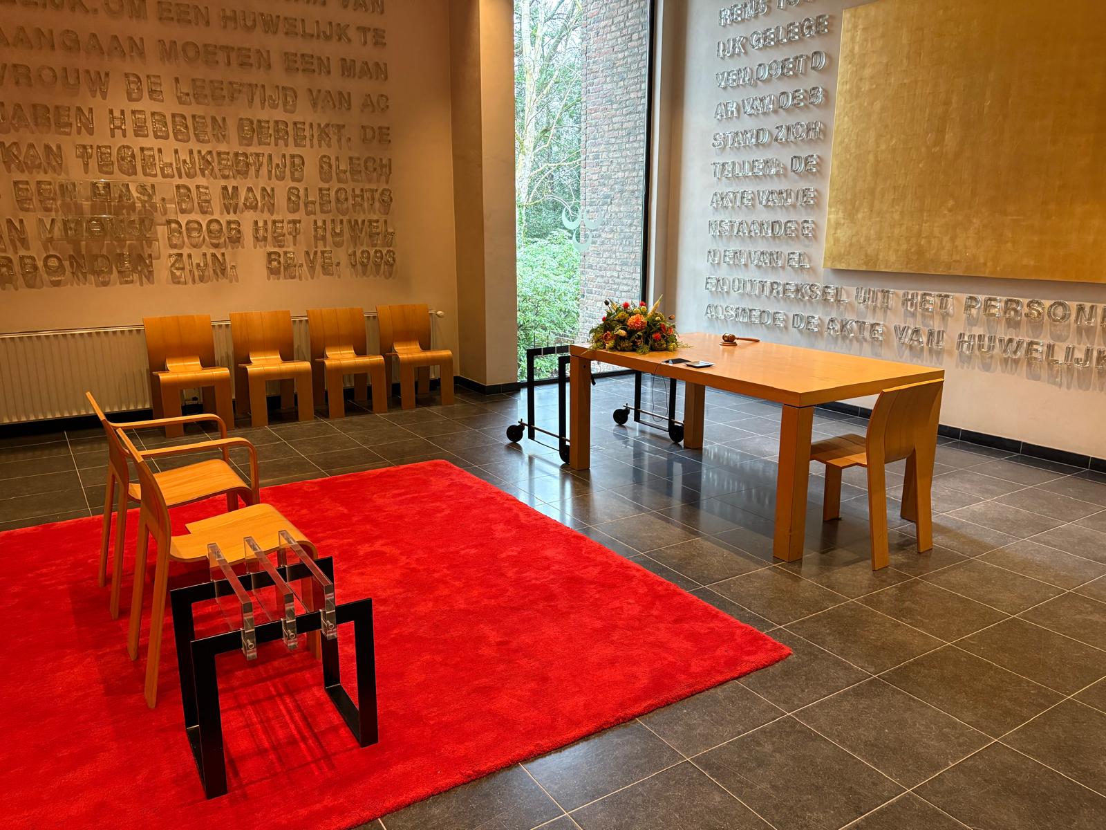 De ingang van de trouwzaal voor een ceremonieel huwelijk of geregistreerd partnerschap bereikt u via de achteringang (personeelsingang). De ambtenaar van de burgerlijke stand of gemeentebode ontvangt u daar. Dieren worden niet toegelaten in de trouwzaal, alleen hulphonden die iemand begeleiden wegens lichamelijke beperkingen. Het is niet toegestaan om na de plechtigheid rijstkorrels, confetti, papiersnippers te strooien. Dit betreft zowel binnen als buiten op het plein voor het gemeentehuis.